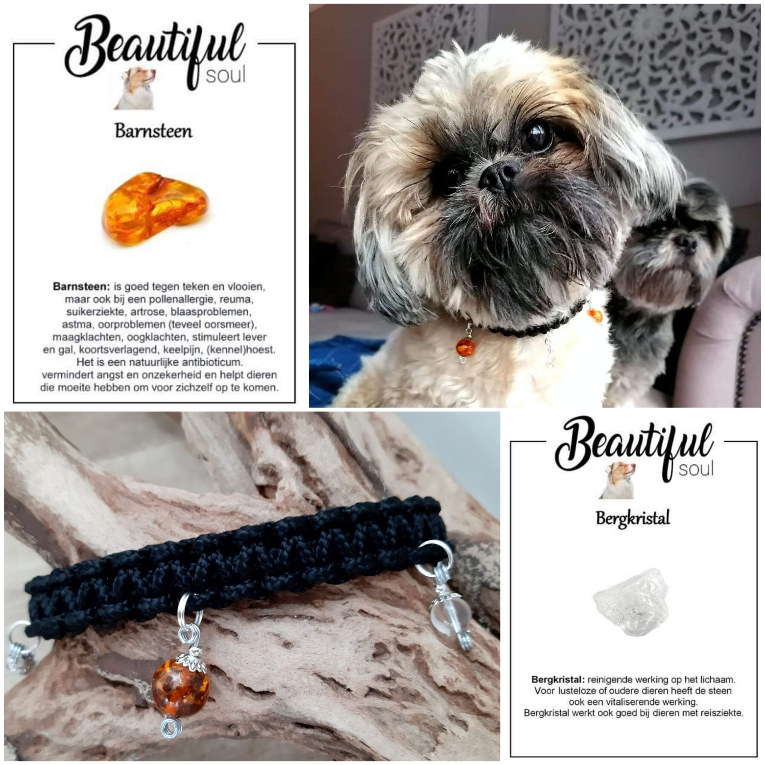 Bij Beautiful Soul vindt je prachtige handgemaakte halsbanden voor binnen (compfy) en voor buitengebruik (mighty) met Edelstenen, met veilige sluitingen en duurzame materialen. De Edelstenen hangers zijn los verkrijgbaar voor aan je eigen halsband, afhankelijk van wat jij en je dier fijn vinden.